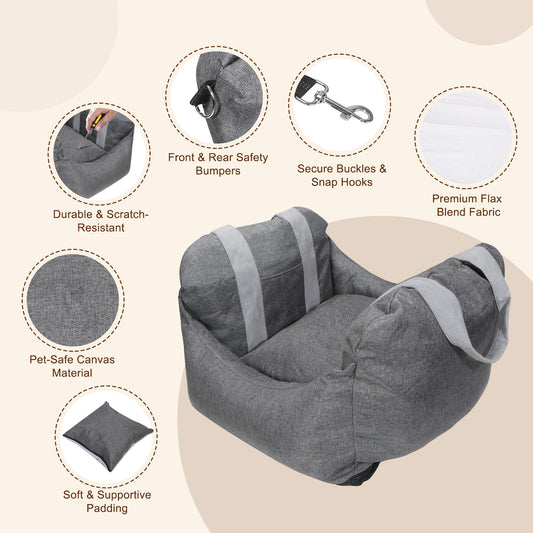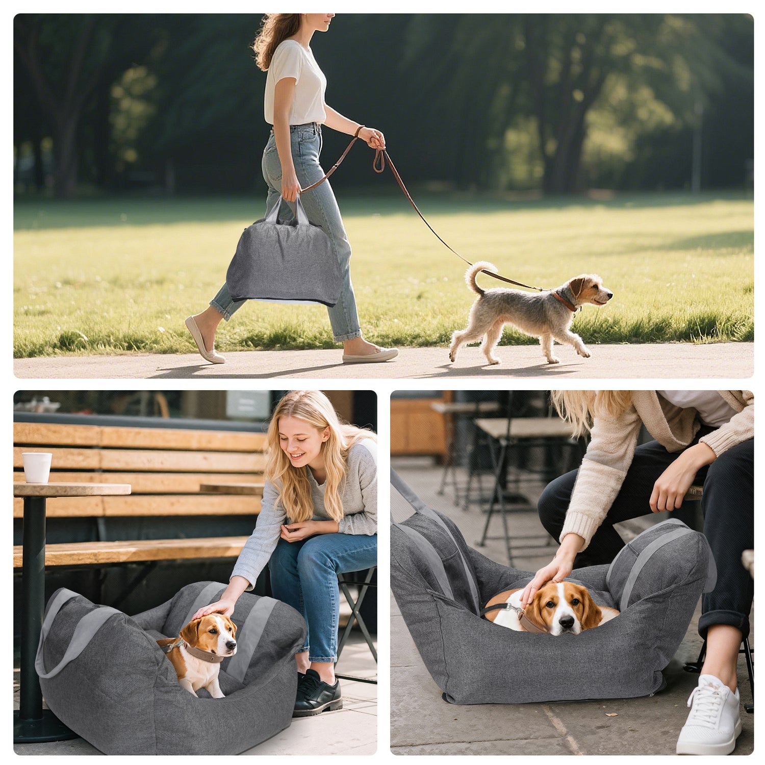 BJOP Dog Car Seat for Small Dogs Up to 25 lbs – Puffy & Roomy Washable Pet Booster Seat with Soothing Soft Thick Cushion, Safety Leash, Foldable Design, and Storage Pockets – Portable Travel Bed Carrier for Cars