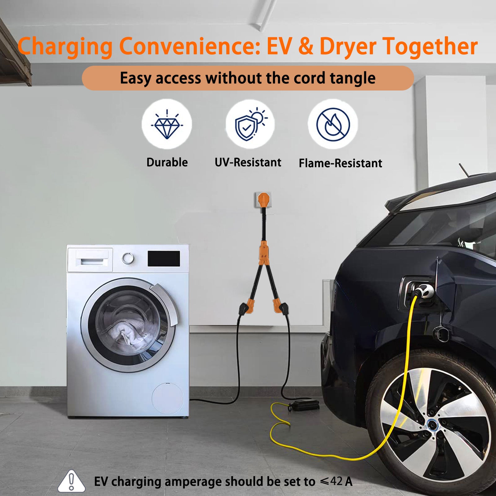【Versatile Use】 It allows you to safely operate two devices simultaneously from the same 220V, 50A receptacle. Compatible devices include, but are not limited to, EV chargers, motorhomes, RV electric equipment, welding machines, plasma cutting machines, washing machines, generators, and dryers. Please ensure to review the cable and splitter information and adhere to local regulations before use. When using it outdoors, be sure to protect it properly.