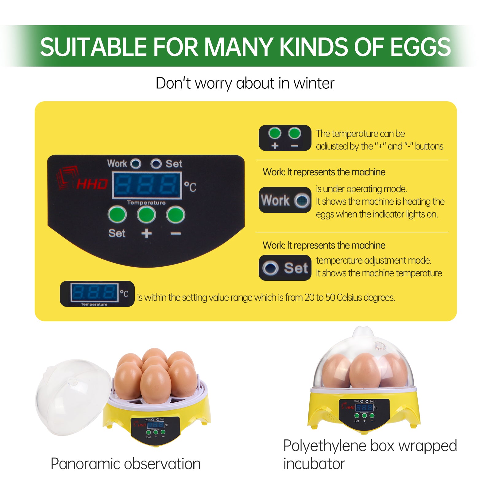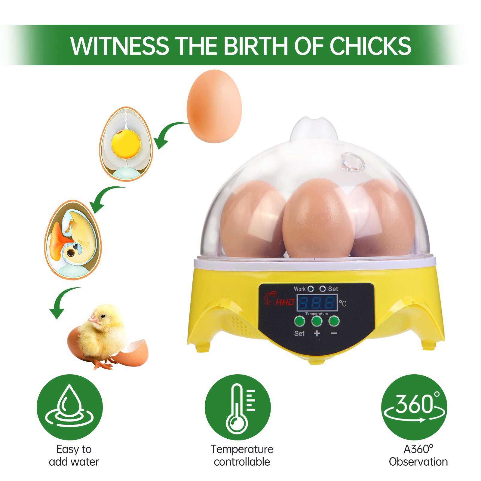 ZEMIRO CHARGE 7-Egg Incubator 360° View Poultry Incubator with Manual Temperature Control for Hatching Chicken, Duck, Goose, Parrot, and Quail Eggs