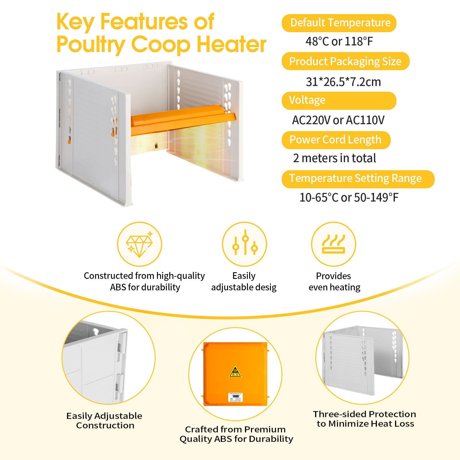 - 【SAFE & STABLE】 Introducing the chicken brooder heater, your solution for cozy and worry-free chick care! With dual temperature sensors, it guards against overheating and potential fires.